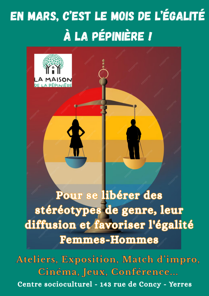Dimanche 8 mars à partir de 14h30 : « JOUONS L’ÉGALITÉ » – Temps festif et convivial avec la découverte de notre exposition collective, puis sur scène les Missionnaires de l’impro nous ferons rire et réfléchir à propos d’égalité. Le spectacle sera suivi d’un goûter partagé et d’un grand quiz en équipe sur l’histoire des droits des femmes – TOUT PUBLIC à VIVRE EN FAMILLE
